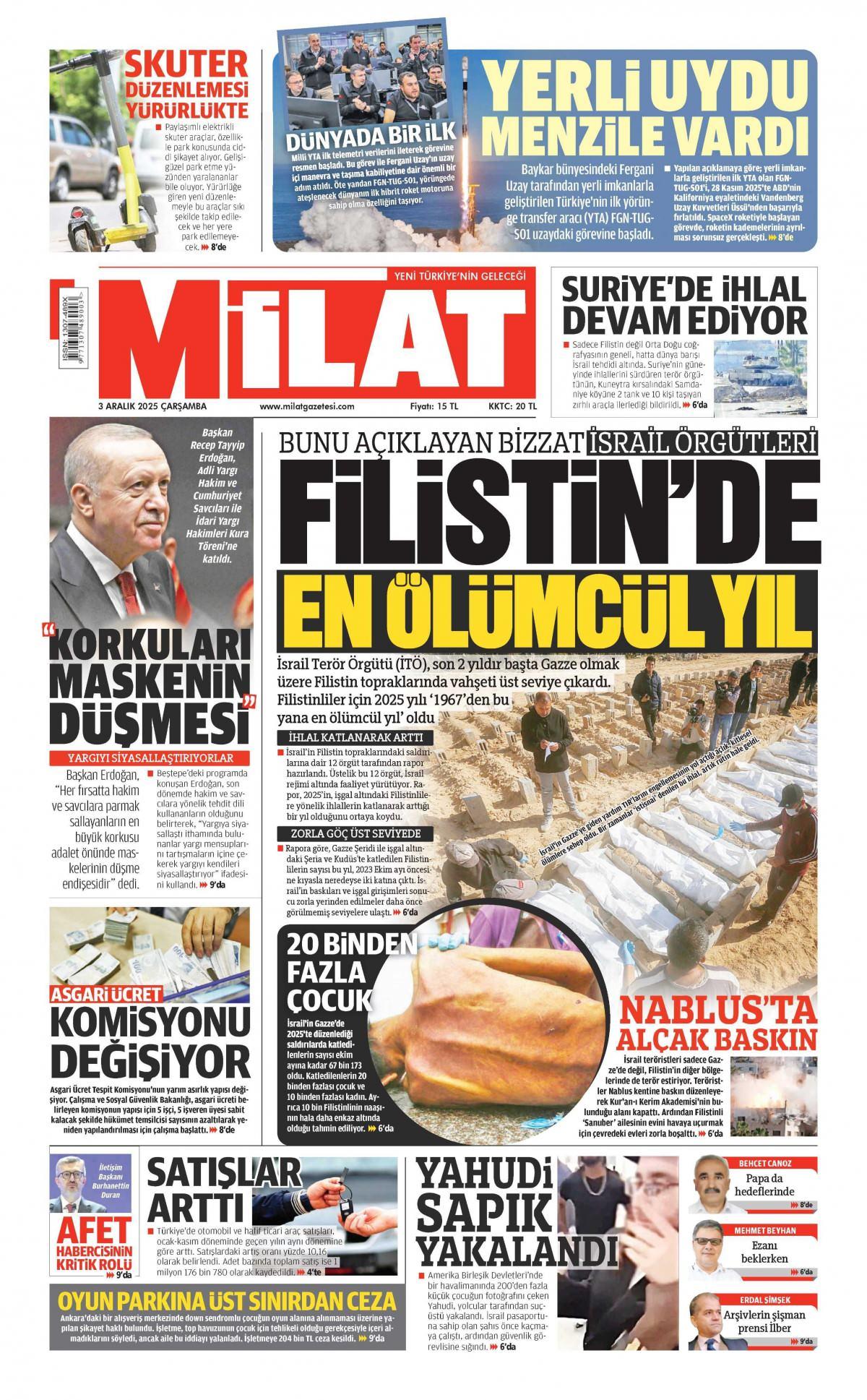 Milat Gazetesi 4 Aralık 2025 Günü Manşeti