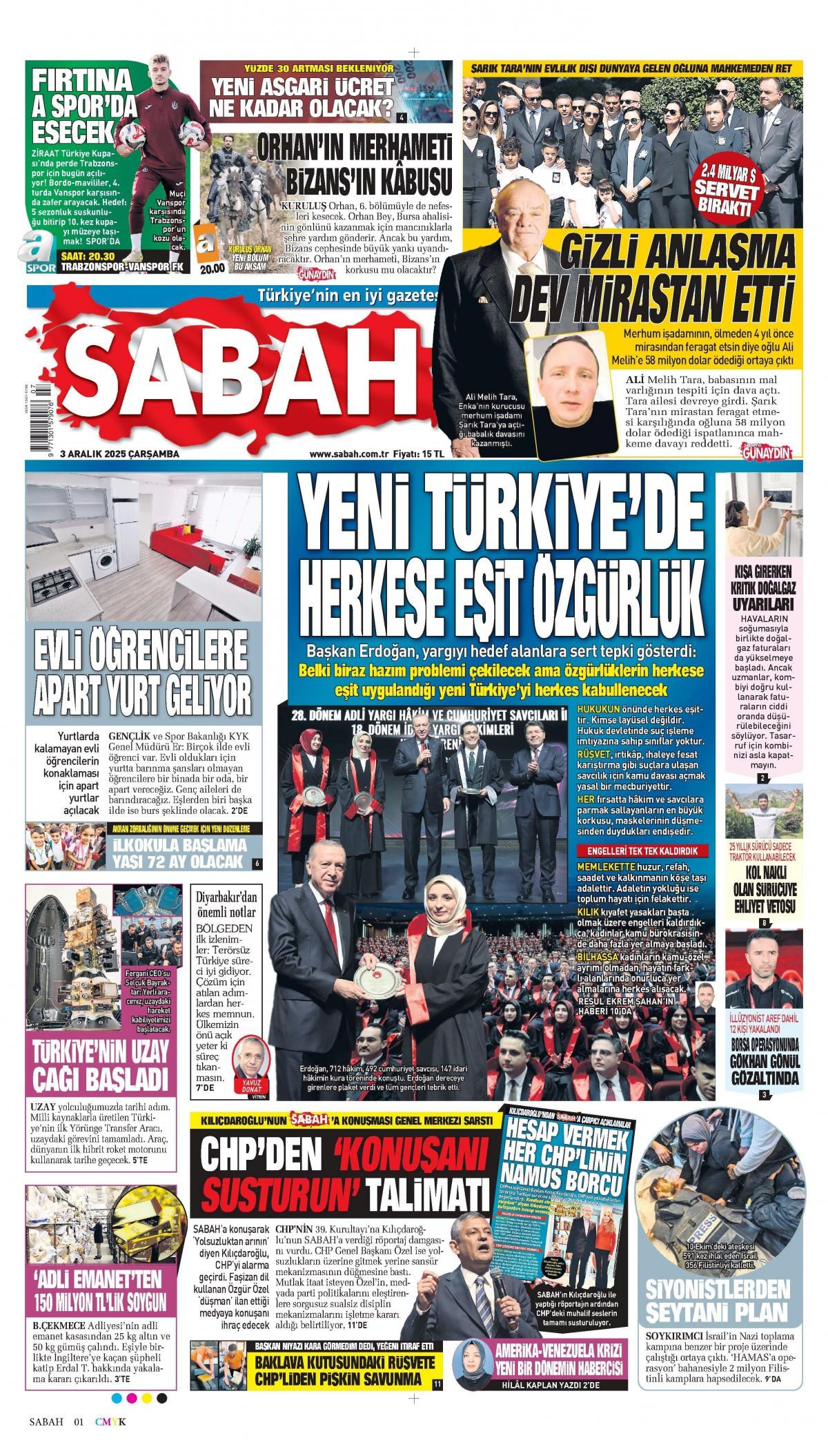 Sabah Gazetesi 4 Aralık 2025 Günü Manşeti